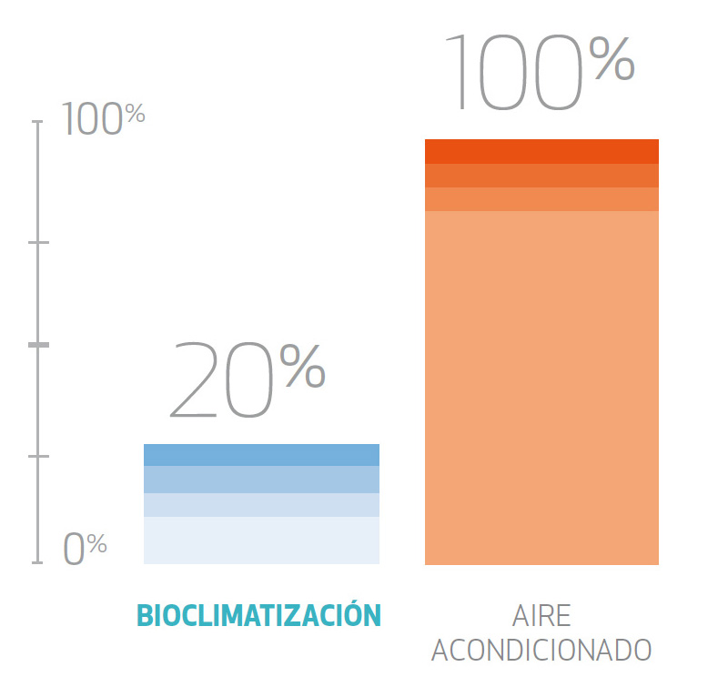 La Bioclimatización es una forma de enfriar, además de muy económica, saludable y ecológica. Este sistema permite la renovación constante del aire, mejorando su calidad ya que lo limpia y filtra, evacuando aire contaminado, permitiendo tener los accesos abiertos. Reduzca la temperatura interior de su nave para mejorar la productividad de su personal y reducir los accidentes laborales.